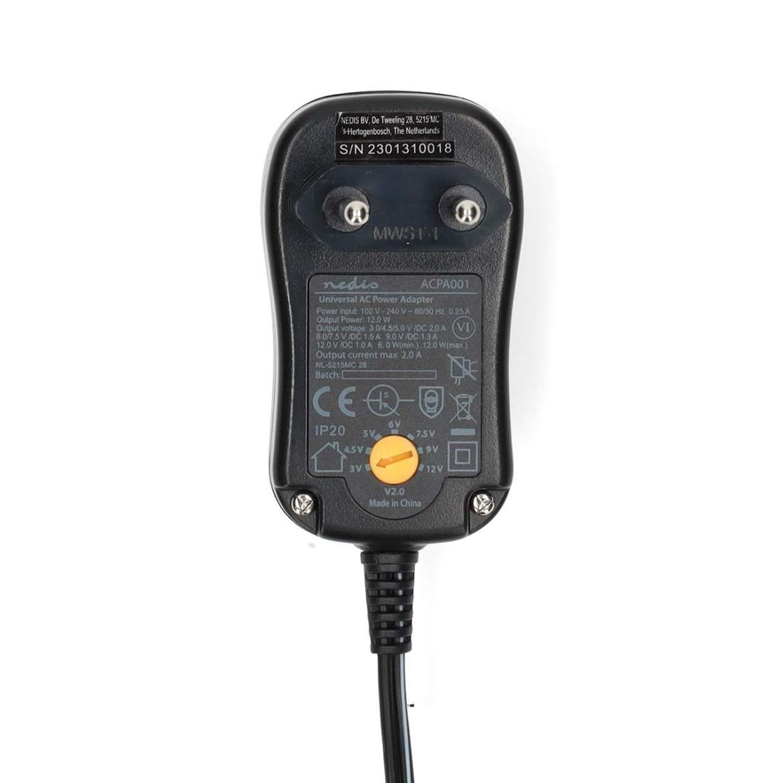 AC Yleisvirtalähde | 12 W | 3 - 12 V DC | 1.80 m | 2.0 A | 6 plug(s) | Musta