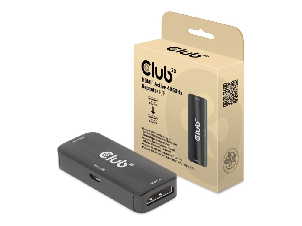 Club 3D - Repeater - HDMI - 19 pin HDMI Type A (female) / 19 pin HDMI Type A (female) - op til 5 m