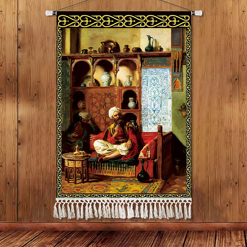 Beauty Uyghur Ethnic Style Wall Tapestry, Artistic Background Decoration, Boho Hanging Art for Bedroom, Living Room, or Cafe