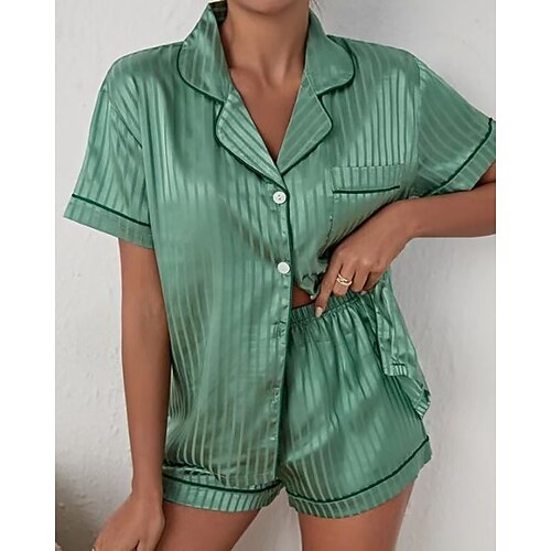 Per donna Abbigliamento da Casa Set Pigiama Moda Casual Morbido Colore Puro Patchwork Bottoni Shorts Casa Vacanza Manica Corta Bavero Bianco Rosa Verde Blu scuro Estate Primavera Autunno Vestibilit