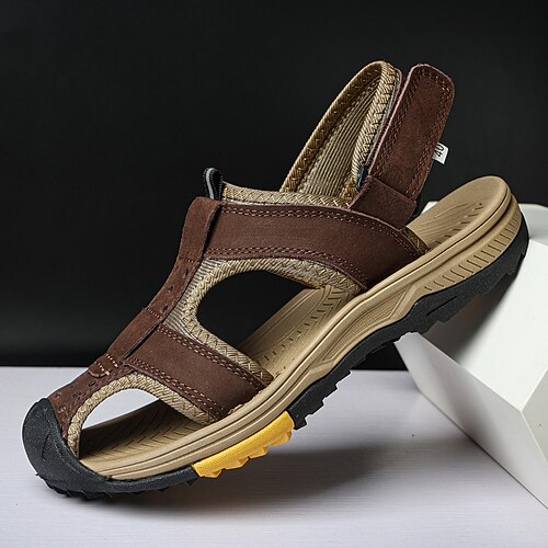 sandali da pescatore in pelle da uomo - sandali estivi traspiranti con punta chiusa per abbigliamento casual e outdoor