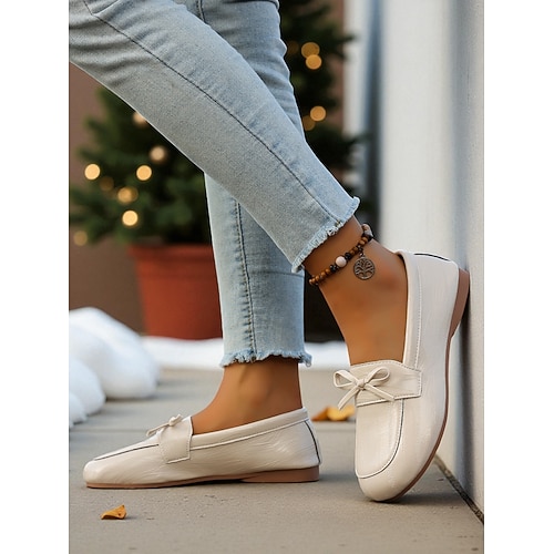Per donna Mocassini Scarpe morbide Scarpe a calzata larga Scarpe Comode Natale Quotidiano Festa della Mamma Fiocco Tacco basso Punta Tonda Classico Casual Comfort Finta Pelle Mocassino Nero Rosso