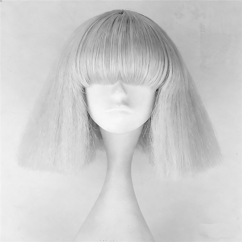 Bob Wig With Bangs Short White Bob Wigs For Women Straight Bob Bangs Wig 10 Inch Heat Resistant Synthetic Hair Natural Looking For Daily Party Use Halloween Wigs