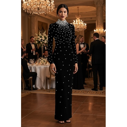 Sirena Tromba Lunghezza al pavimento Abiti da Ballo Abito da Sera Da principessa Abito formale Elegante Scintillante Stile Celebrità Manica Lunga Collo Alto Festa in giardino Matrimonio Pizzo Velluto
