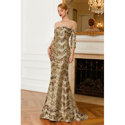 Sirena Tromba Lunghezza al pavimento Abito da invitata a nozze Abito Formale Abito da sera Abito da cerimonia per signora Mezza Manica Girocollo Collo Alto Elegante Formale Ospite di nozze Riunione
