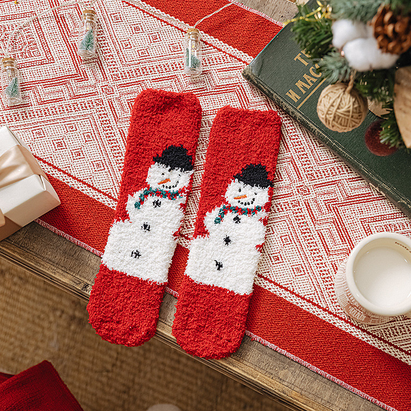 Christmas Socks for Women, Cozy Coral Fleece Warm Slipper Socks, Thick Plush Fuzzy Winter Sleep Socks, Couple Family Matching Gift, Indoor Non-Slip Floor Socks
