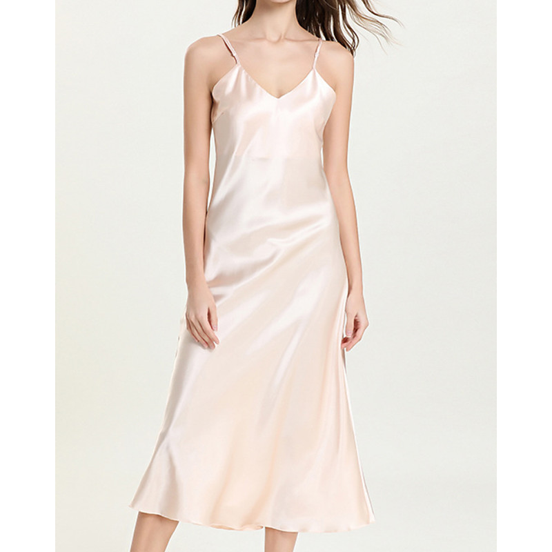 Women's Nightgown Casual Soft Satin Pure Color Backless Dress Daily Home Bed Sleeveless Straps Blue Black White Light Green Pink Summer Loose Fit