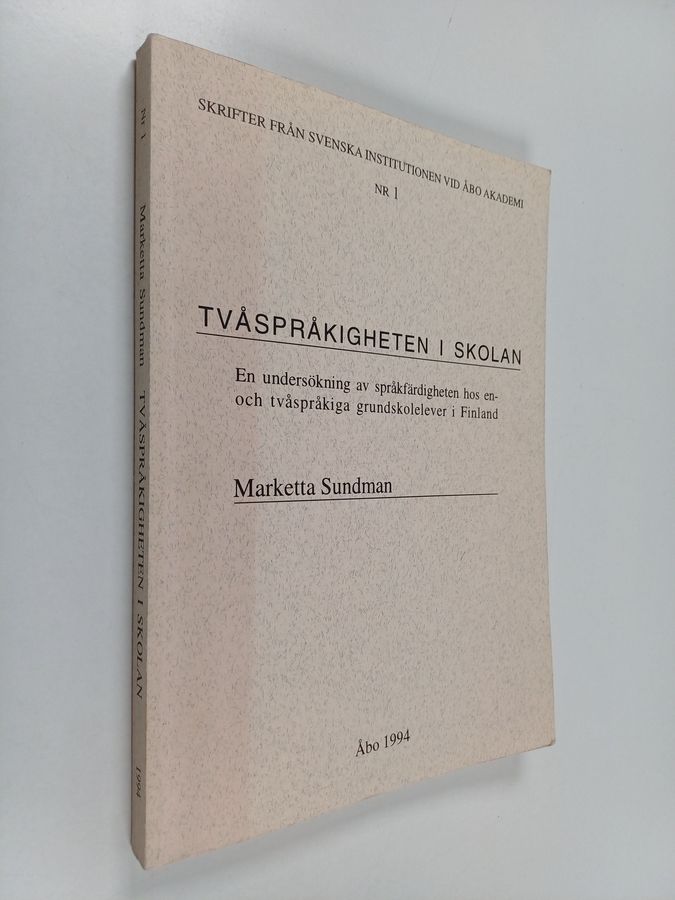 Marketta Sundman : Tvåspråkigheten i skolan : en undersökning av språkfärdigheten hos en- och tvåspråkiga grundskolelever i Finland