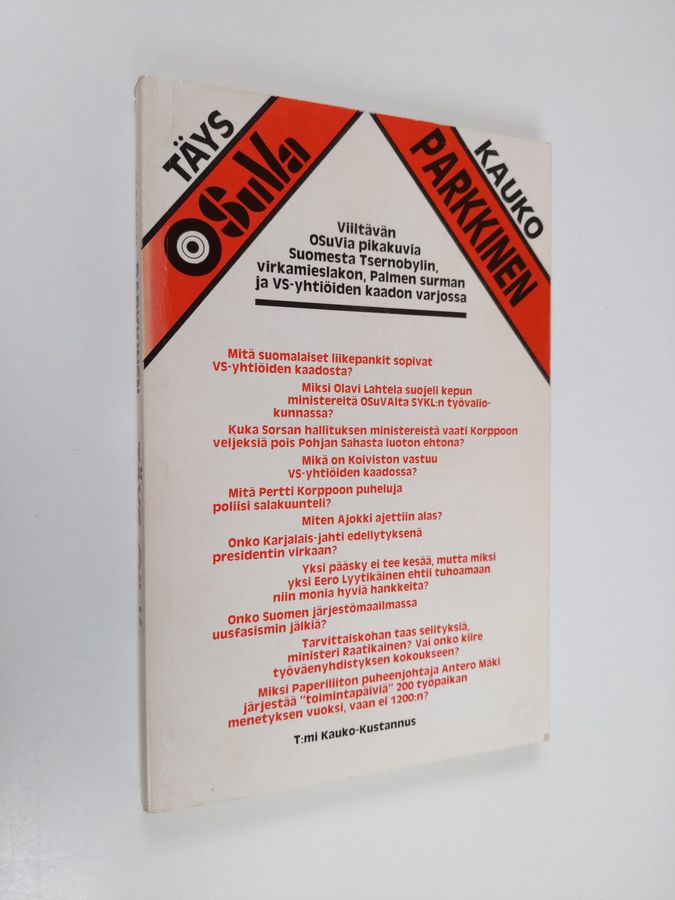 Kauko Parkkinen : Täys OSuVa : viiltävän OSuVia pikakuvia Suomesta Tsernobylin, virkamieslakon, Palmen surman ja VS-yhtiöiden kaadon varjossa