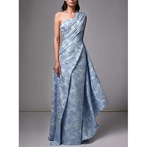 Linea ad A Lunghezza al pavimento Abito da Sera Da principessa Abito formale Elegante Floreale Senza Maniche Monospalla Matrimonio Formale Tasca Jacquard con Stampa floreale Volant