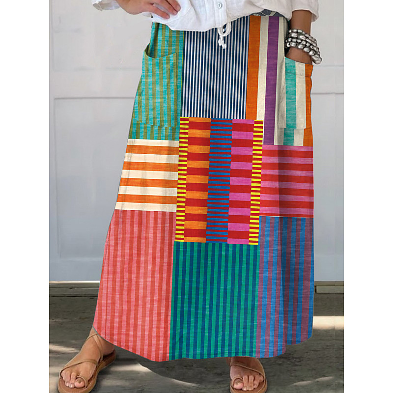 Women's Skirt Casual Maxi Mid Waist Skirts Geometric Inelastic Daily Vacation Light Yellow Red Blue Summer Polyester