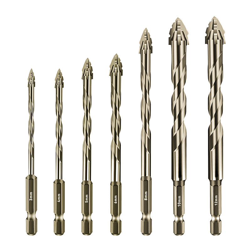 Four-Flute Sawtooth Eccentric Drill Bit Set for Tile, Concrete, and Glass, Dry Drilling Cross Head Bits for Precise Punching, Multi-Material Hole Saw Kit