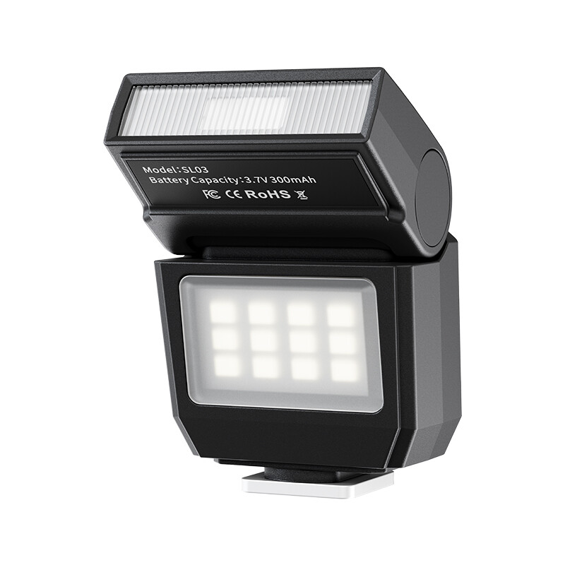 ULANZI SL03 Mini Flash avec éclairage vidéo, Speedlite GN8 6500K, Angle réglable à 90°, 4 Niveaux de Puissance, Mini Flash Manuel, Griffe Porte-Accessoire à Contact Unique pour Sony/Canon/Fuji, Noir