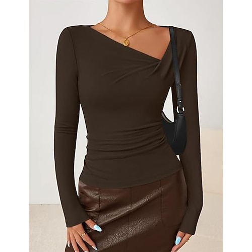 Per donna Maglietta Elegante Vintage Manica Lunga Scollo a Cascata Top Regolari Quotidiano Blu Vino Marrone Bianco sporco Primavera Autunno