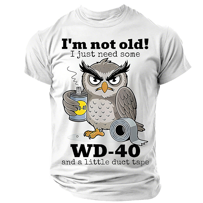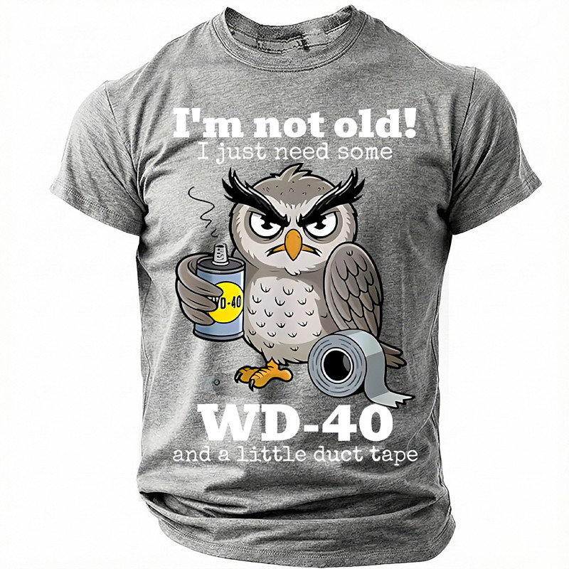 Im Not Old I Just Need Some WD 40 And A Little Duct Tape Shirt Funny Owl Mechanic Dad Joke Graphic Tee Novelty Sarcastic Top Clothing Apparel S M L XL XXL XXXL