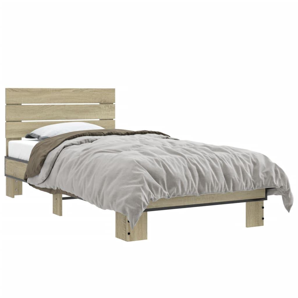 Sengeramme 75x190 cm konstrueret træ og metal sonoma-eg