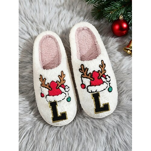comode pantofole natalizie da donna con design a renna: morbide pantofole con 26 lettere tra cui scegliere, a tema natalizio, perfette per rilassarsi e come regalo