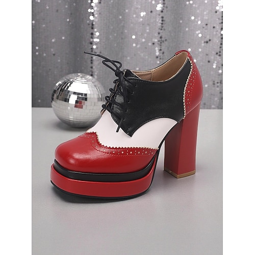 Scarpe con plateau color block da donna rosse e nere con dettagli allacciati, perfette per feste a tema discoteca anni '80, serate fuori ed eventi speciali