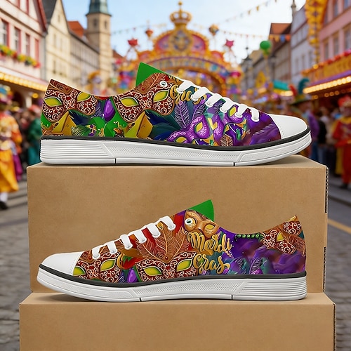 scarpe da ginnastica da uomo a tema carnevalesco: scarpe casual con stampa di maschere colorate per festival, sfilate e feste di strada