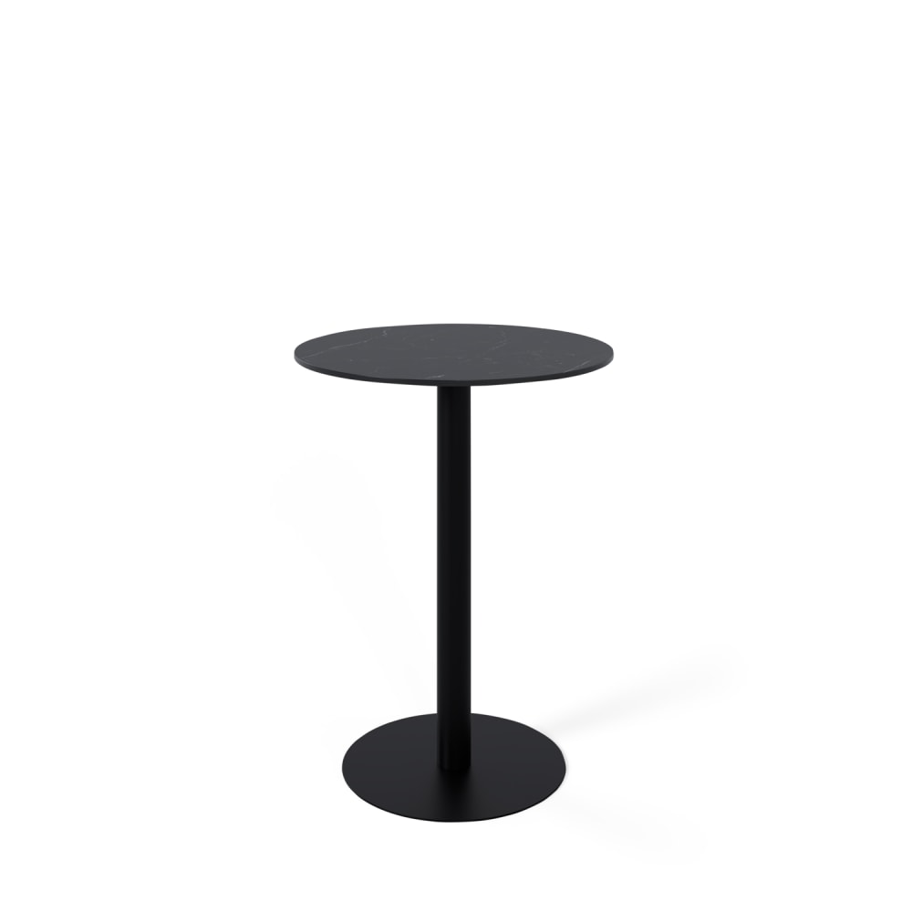 Tavolo alto rotondo con piano in porcellana nera e gambe nere