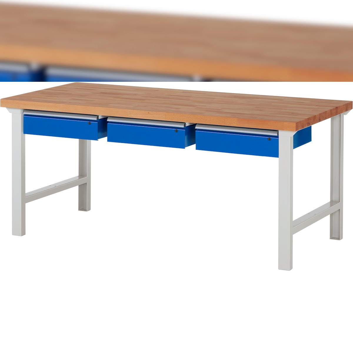 PROREGAL Werkbank Serie 7000 - Modell 7003 | HxBxT 84x200x90cm | 3x Schublade | Schubladenmaße 3x150mm | Lichtgrau | Arbeitstisch Werktisch