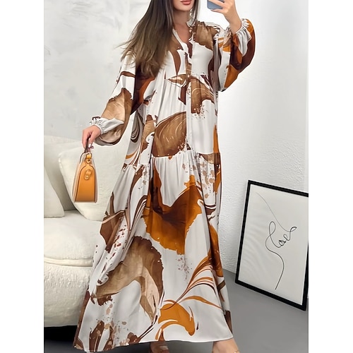 Per donna Abito maxi Abito a Tubino Vacanza Casual All'aperto Uscire Vestibilità comoda Floreale Manica Lunga Collo ripiegato Blu Giallo Fucsia Verde Estate Primavera Autunno