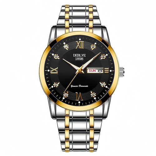 Nuovo Orologio da Uomo Business Olevs Orologio Incastonato di Diamanti Luminosa nel Buio Doppio Calendario Visualizzazione della Settimana Orologio al Quarzo Multifunzionale Impermeabile Orologio