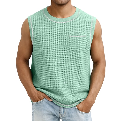 Per maschio Canotta a nido d'ape Canotta Gilet Canottiera Senza Maniche Girocollo Estate Semplice Moda Classico Casual Tasca Casuale Palestra Streetwear Nero Verde chiaro Blu scuro Maglietta Top per