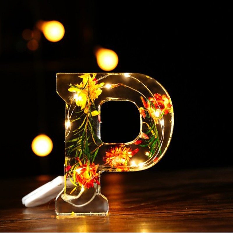 1 Pc 11.5CM 26 letter LED night light, dry flower warm light desktop decoration light, ornament light, Christmas Halloween wedding birthday party decoration light