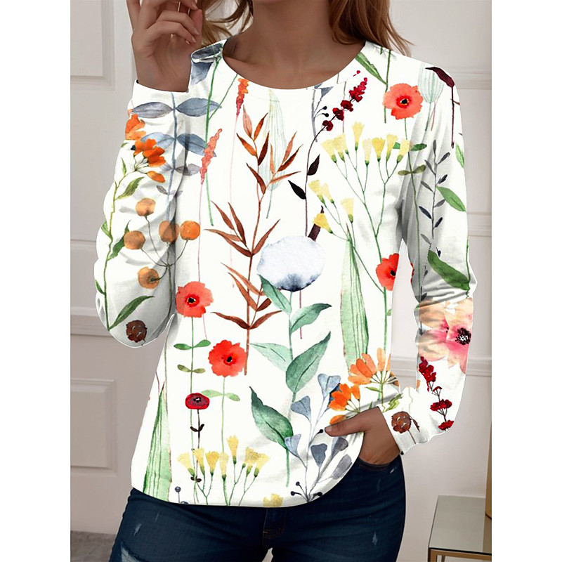 Women's T Shirt Floral Graphic Gradient Elegant Vintage Stylish Long Sleeve Crew Neck Round Neck Regular Tops Daily Going out Weekend Print White Summer Spring Fall Spring, Fall, Winter, Summer