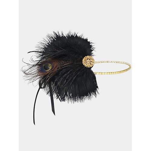 Cerchietto per capelli da donna anni '20 con piume e perline dorate e catene di strass - accessorio per capelli vintage in stile flapper per le feste Gatsby