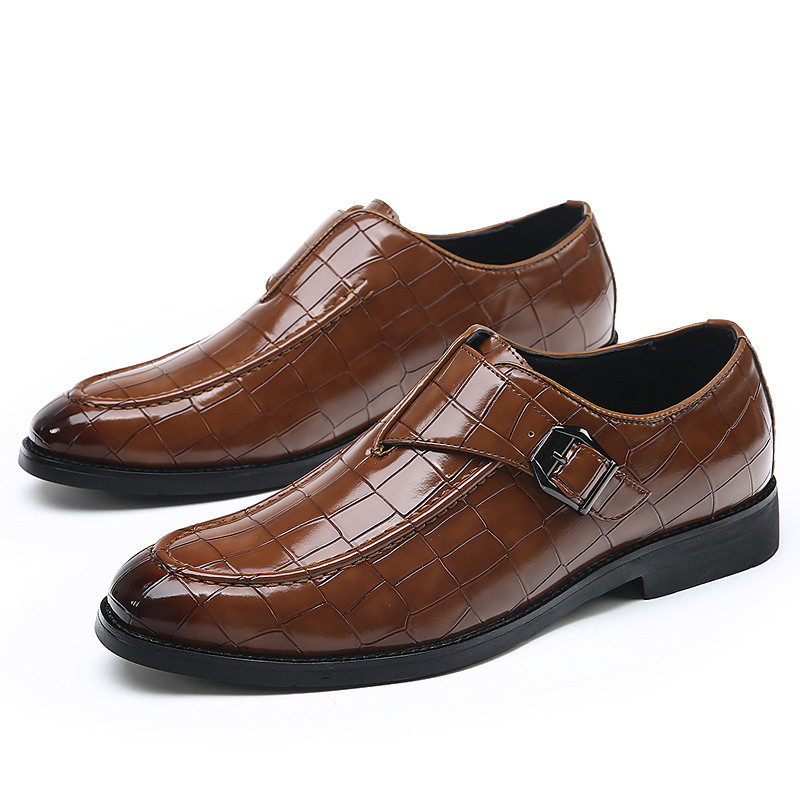 Men's Burgundy Crocodile-Pattern Monk Strap Shoes – Elegant Leather Shoes for Christmas Special Occasions