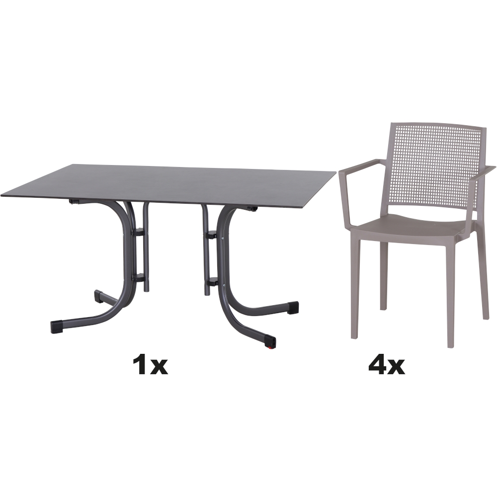 SIENA GARDEN Urban Lights Set 5teilig Square Sessel gastrotauglich taupe mit Tisch Sola 140x90