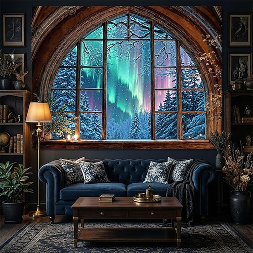 astronave oblò vista spazio esterno galassia universo pianeta ad anelli nebulosa stelle luna ghiacciata paesaggio fantascientifico finestra arazzo da parete appeso per sala giochi arredamento camera