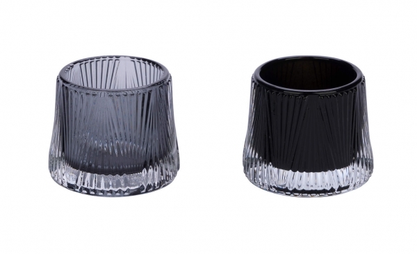 NEU 2er Set Glaswindlicht, grau / anthrazit, 8 x 8 x 6,7 cm, handgefertigt, *Germany*