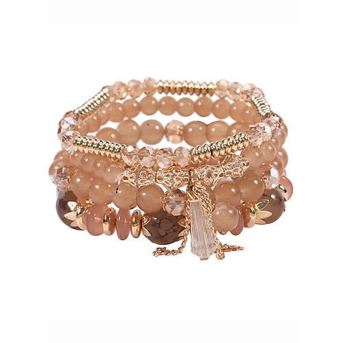 set di braccialetti da donna con perline di cristallo finto e accenti dorati, braccialetti elastici a strati in stile boho per feste, matrimoni e uso quotidiano