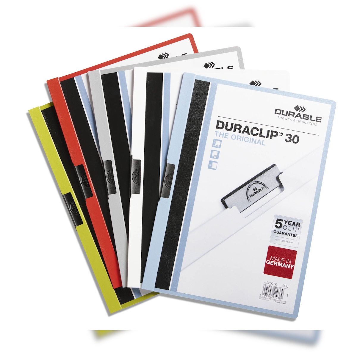 Durable 220000 Klemm-Mappe Duraclip Original 30 (für 1-30 Blatt A4), 25 Stück, farbig sortiert