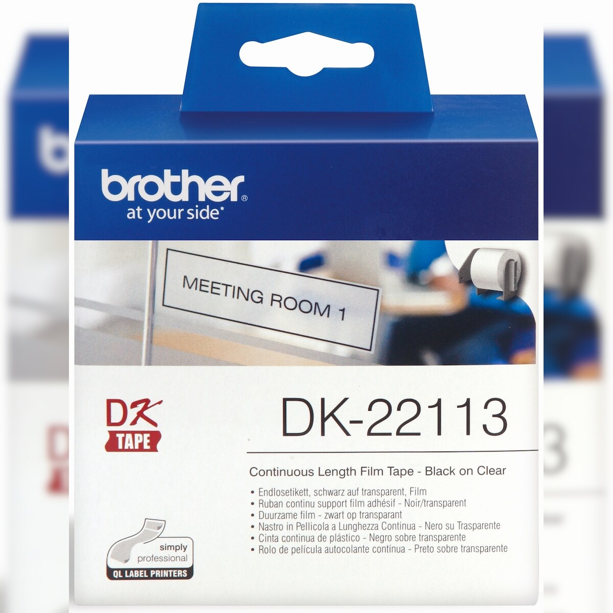 Brother DK-Endlos-Etiketten 62mm x 15,24m Folie transparent Packung mit 3 Stück