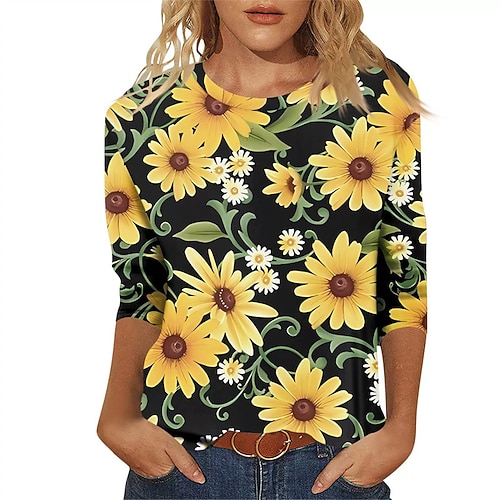 Per donna Maglietta Grafico Girasole Casual Manica Corta Girocollo Top Regolari Quotidiano Uscire Weekend Stampato Nero Bianco Giallo Verde Grigio scuro Autunno