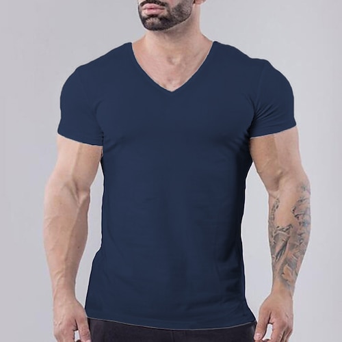 Per uomo Manica Corta Scollo a V Estate Tinta unita All'aperto Casuale Athleisure Grigio scuro Nero Bianco Maglietta Top per Uomo