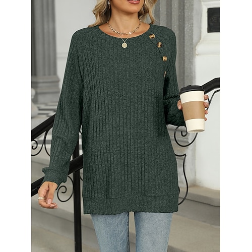 Per donna Blusa Tinta unica Elegante Casual Manica Lunga Girocollo Top Regolari Quotidiano Bottoni Nero Verde militare Rosso Blu Primavera Autunno Inverno