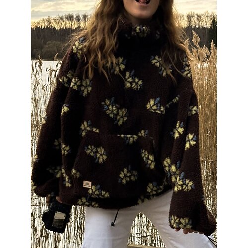 Per donna Felpa Pullover Floreale Casual Manica Lunga Dolcevita Top Regolari Streetwear Abbigliamento Quotidiano Tasca Stampato Nero Giallo Arancione Caffè Autunno Inverno