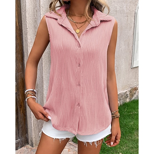 Per donna Blusa Semplice Attivo Casual Senza Maniche Colletto a Camicia Top Regolari Quotidiano Ferie Uscire Bottoni Nero Bianco Rosa Beige Estate Primavera