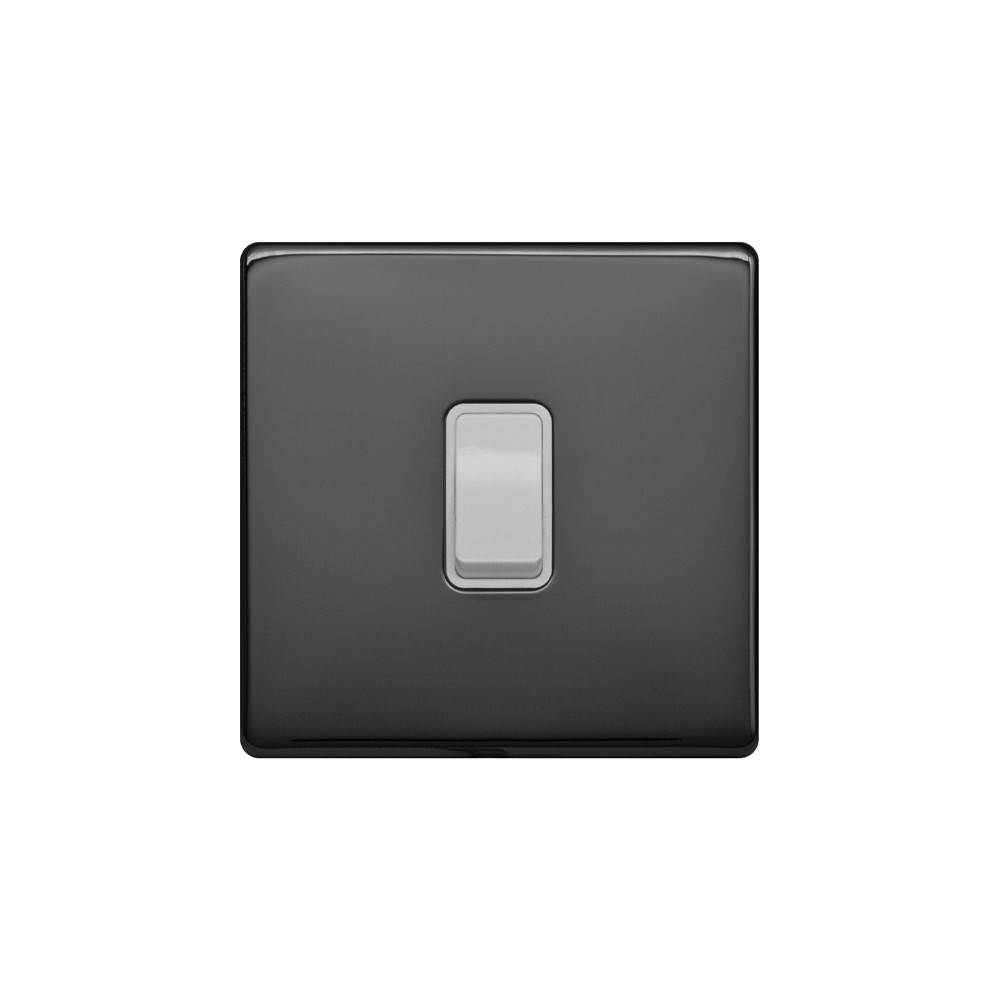 Lieber Black Nickel & White 1 Gang Intermediate Switch - Screwless - Size: 86mm x 86mm x 2.1 mm
