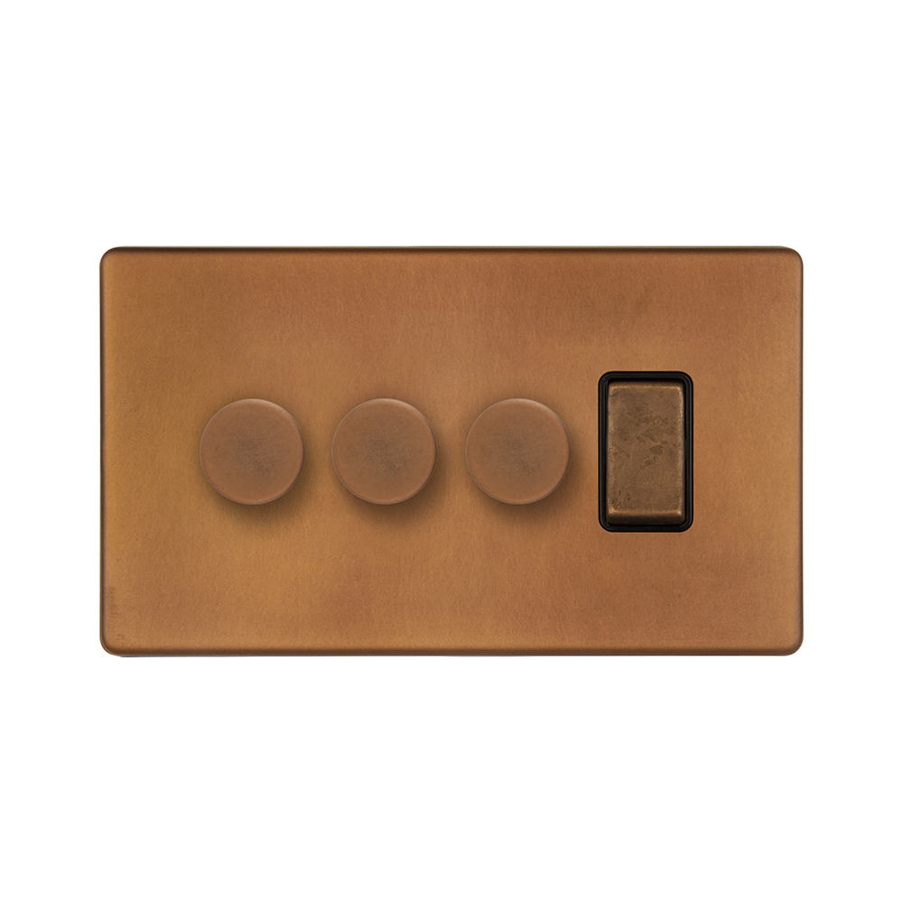 Soho Lighting Antique Copper 4 Gang Switch with 3 Dimmers (3 x 2-Way intelligent Dimmer & 1 x 2-Way Switch)