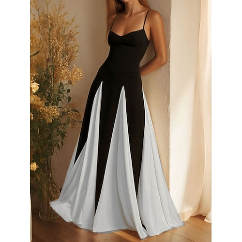 Per donna Abito maxi Abito a trapezio Abito Sottoveste Elegante Festa cocktail All'aperto Feste Ospite di nozze Patchwork Taglia piccola Blocco di colori Senza Maniche Spallina Nero Giallo Rosso