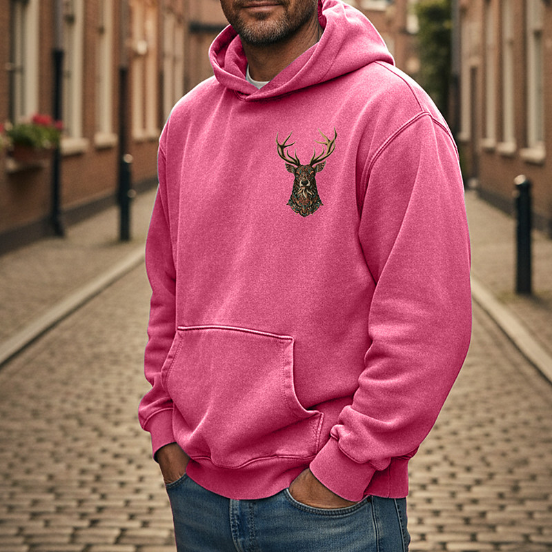 Men's Hoodie Distressed Hoodie Black Yellow Pink Red Blue Hooded Reindeer Drawstring Pocket Front Pocket Sports Outdoor Daily Holiday Cotton Streetwear Basic Casual Spring Fall Clothing Apparel