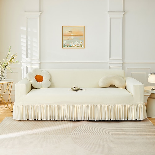 Copridivano elastico in tessuto jacquard con orlo a gonna, copridivano componibile a forma di L, copridivano angolare per soggiorno 1, 2, 3 e 4 posti