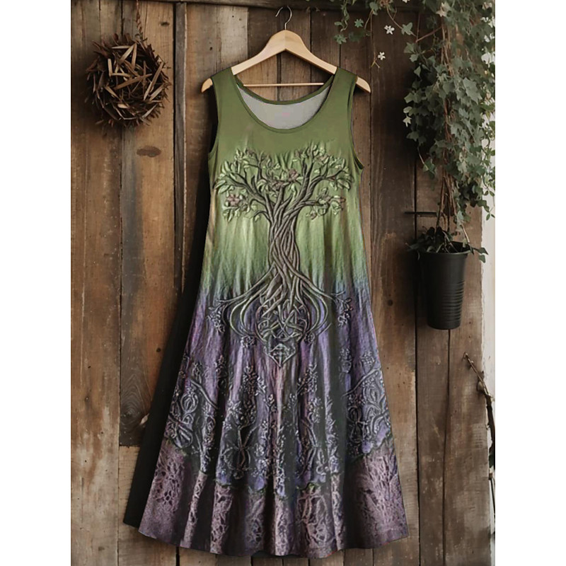 Women's Vintage Viking Celtic Knot Gradient Art Midi Dress Sundress A Line Dress Vacation Casual Boho Wedding Party Beach Regular Fit Floral Graphic Leaf Sleeveless U Neck