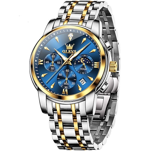 die neue Business-Uhr mit Edelstahlarmband von Olevs mit leuchtendem Kalender, kleinen drei Zeigern, 24-Stunden-Multifunktions-Quarzuhr, lässige und modische Herren-Sportarmbanduhr